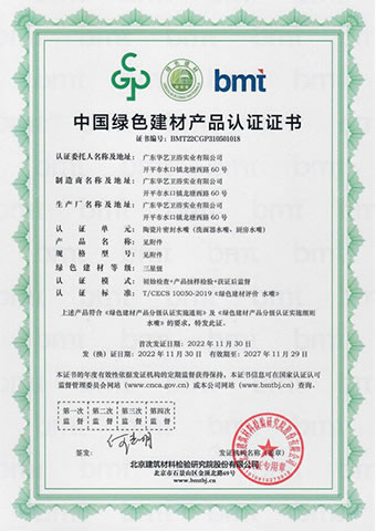 中國綠色建材產品認證證書